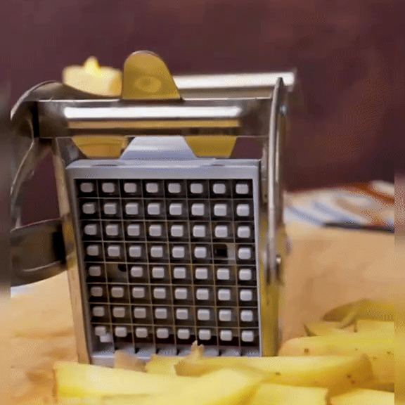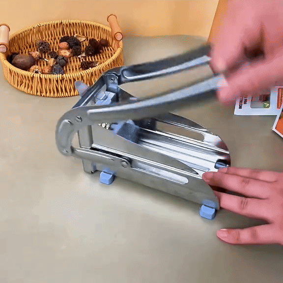 Simply place your potato (or other veggie) in the slicer, press down on the handle, and get perfectly cut fries in seconds! The sharp, stainless steel blades cut effortlessly while the non-slip base keeps everything steady and safe.